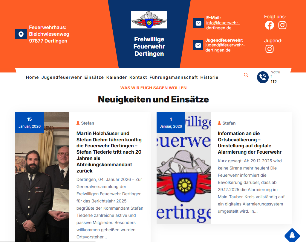 Die Freiwillige Feuerwehr Dertingen hat eine neue Interentseite. Hier wollen wir künftig vor allem über unsere Einsätze informieren, sowie euch…
