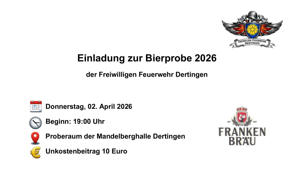 Einladung zur Bierprobe 2026 der Freiwilligen Feuerwehr Dertingen